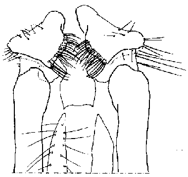starker Beborstung, Surstylus in Aufsicht im basalen
