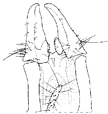luteitarsis ZETT. (Schleswig-Holstein) Apikalhälfte des Epandriums, dorsal  | ![]()  |